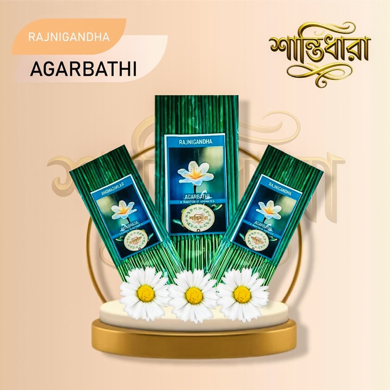দেশীয় ঐতিহ্যের সাথে মিশে থাকা রজনীগন্ধার স্নিগ্ধ ও দীর্ঘস্থায়ী সুবাস নিয়ে এলো শান্তিধারা রজনীগন্ধা আগরবাতি। রজনীগন্ধার প্রাকৃতিক সুগন্ধ মনকে শান্ত করে এবং ঘরে এক উৎসবমুখর আমেজ নিয়ে আসে। যারা হালকা অথচ মনমাতানো ঘ্রাণ পছন্দ করেন, তাদের জন্য এটি একটি শ্রেষ্ঠ বাছাই।